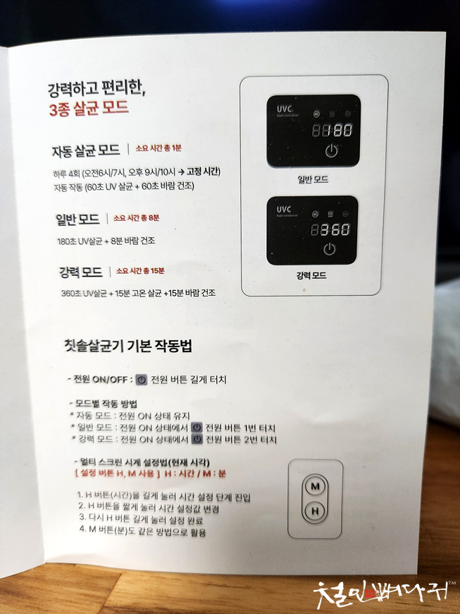 꽂아둘 수 있고, 칫솔 살균 및 건조할 때,