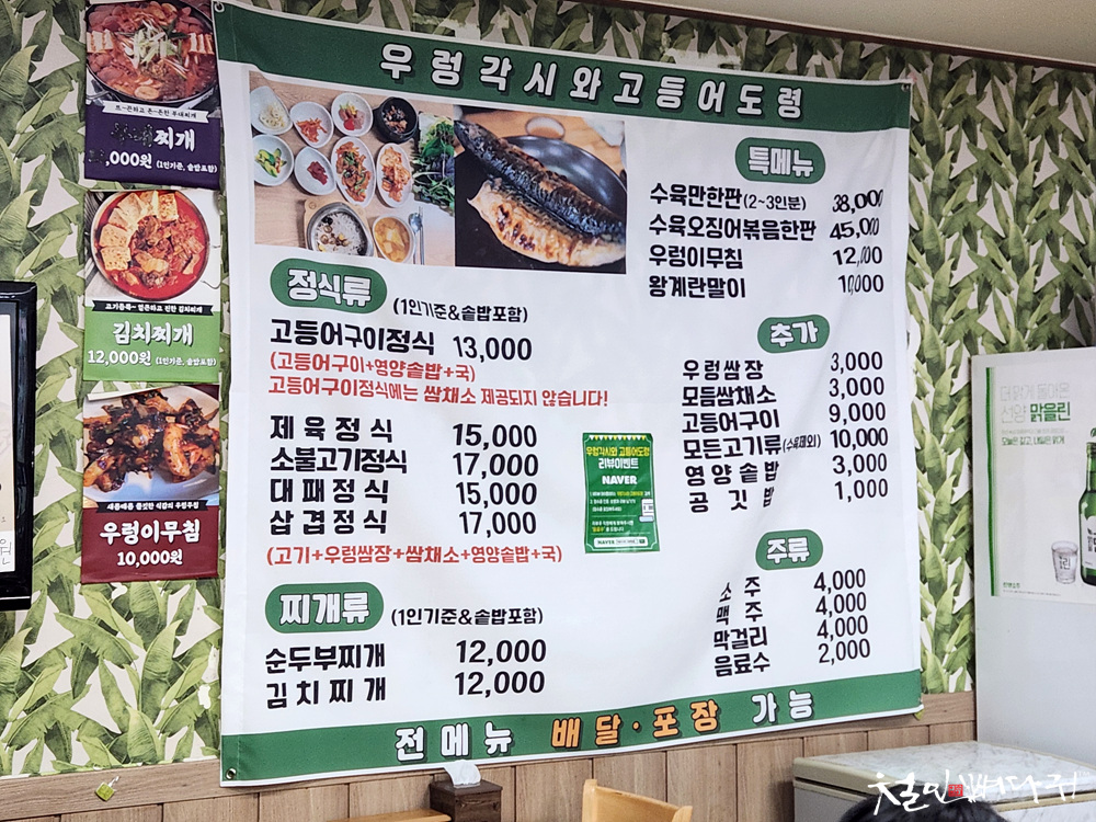 식당 외부에서 메뉴들 종류와 가격을 볼 수 있습니다.