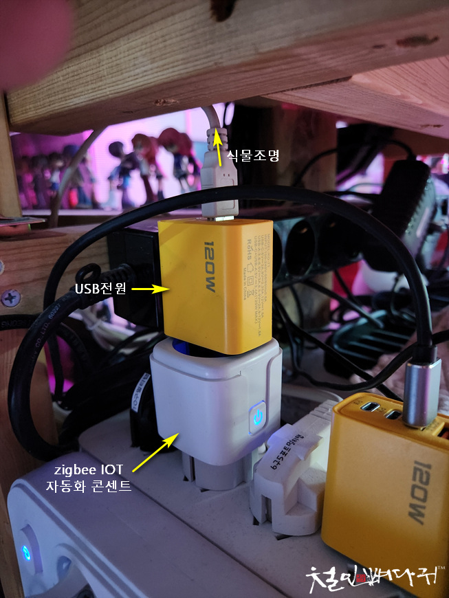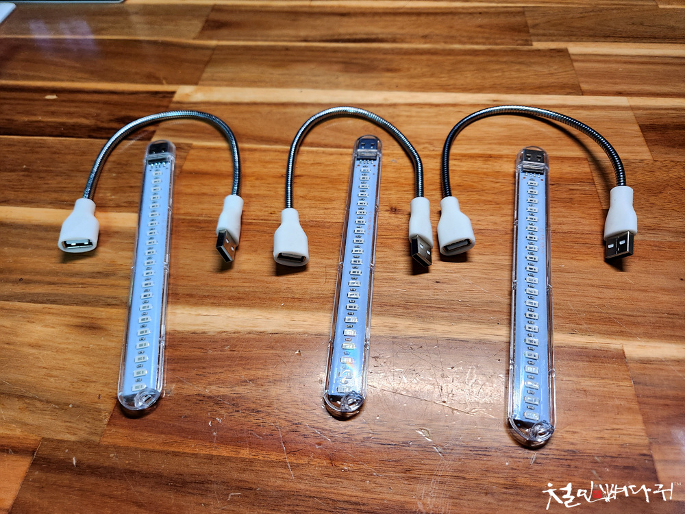 3포트 USB허브에 식물조명 3개를 연결해 주었고,