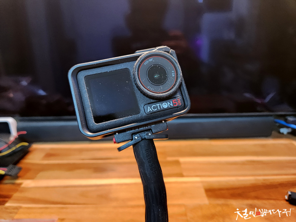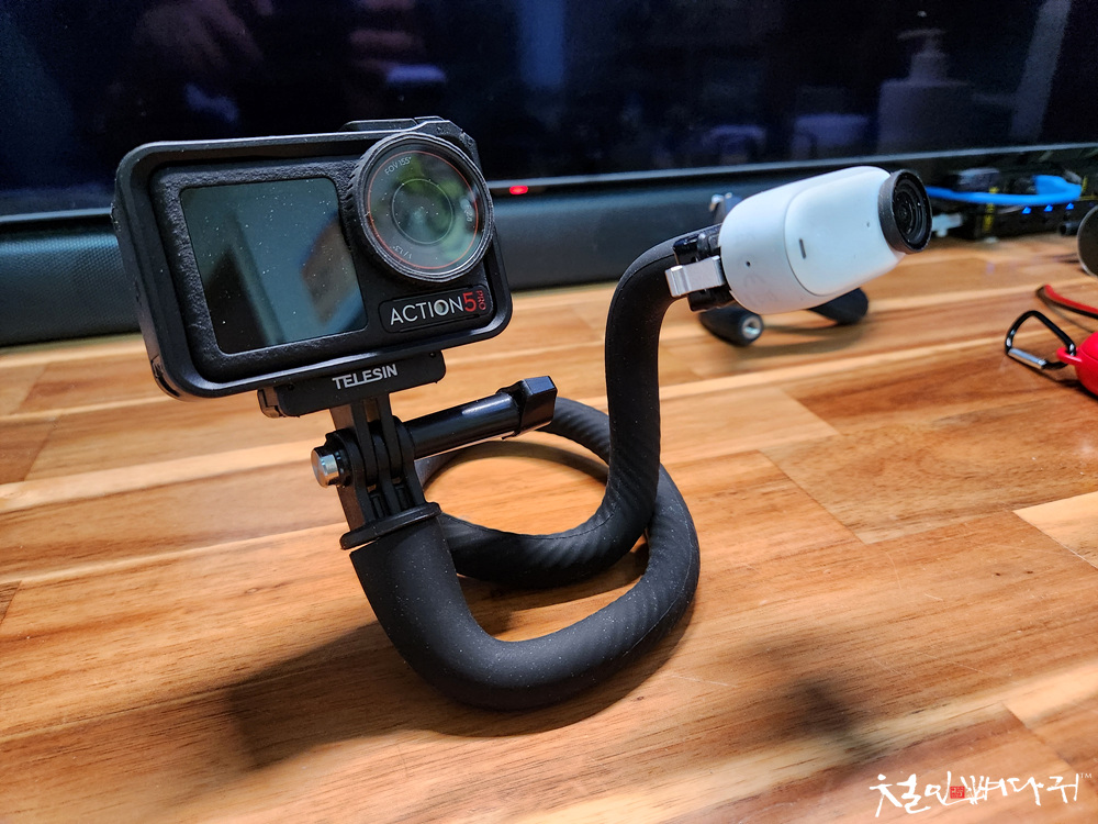 액션캠 자바라거치대의 반대쪽에 꽂아서
