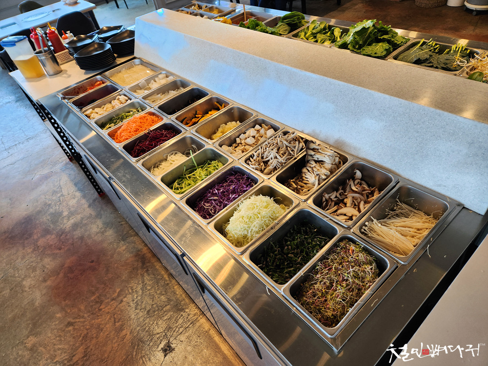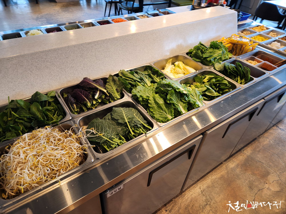 식당 중앙에 샐러드바가 있어서 여러 가지