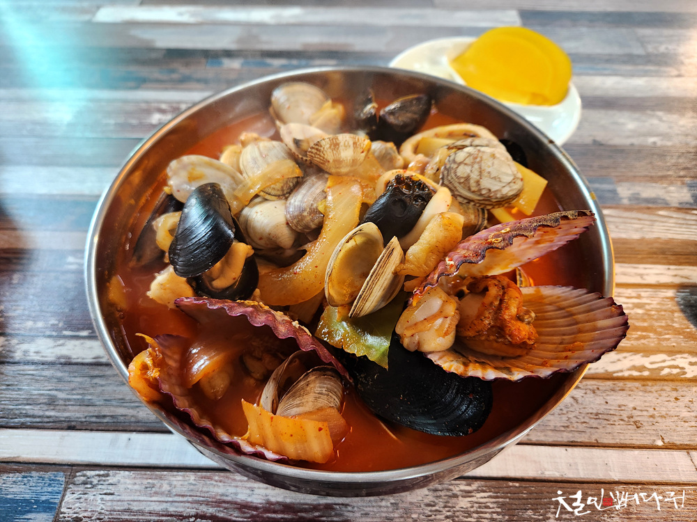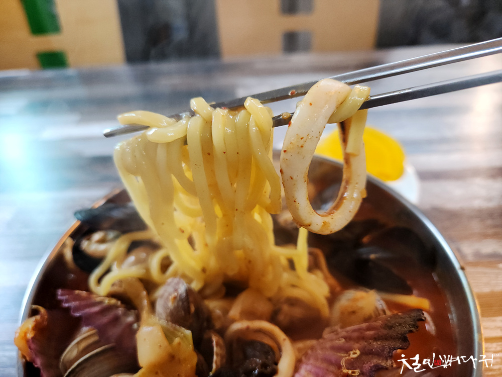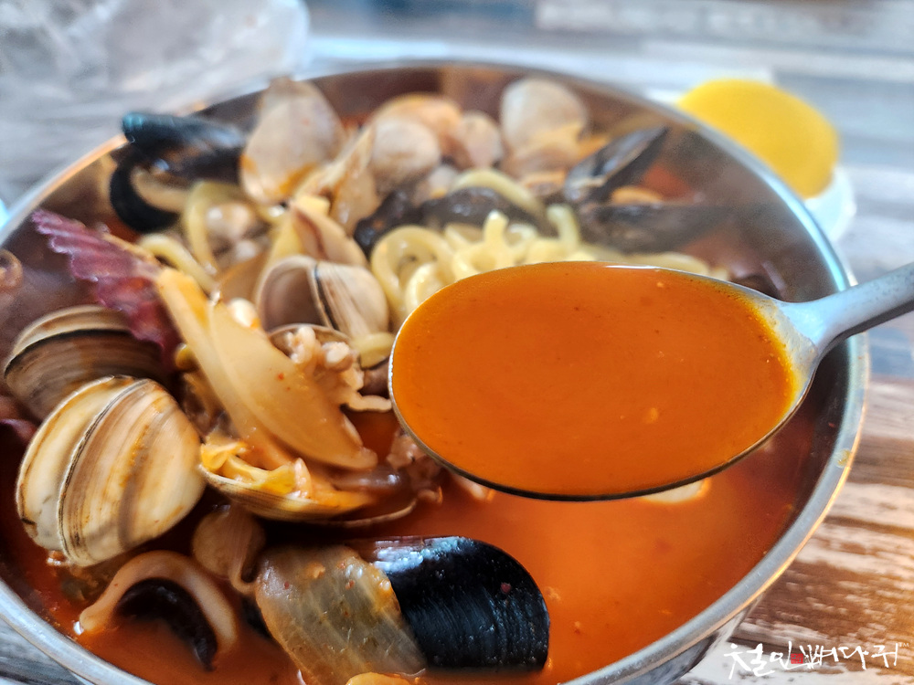 조개류 알맹이들이 잔뜩 담겨있는 짬뽕에