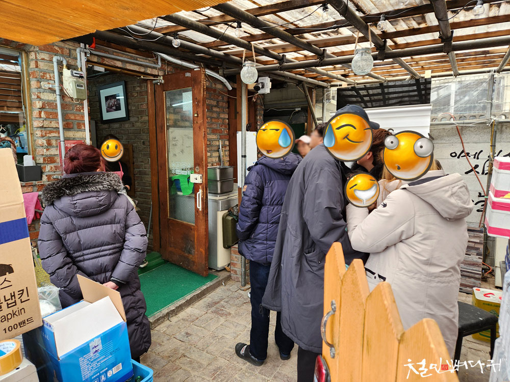 기다리는 사람들이 식당 밖뿐 아니라