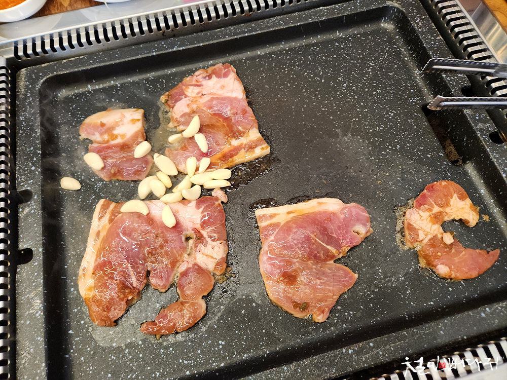 점심때와 저녁때의 차이는 삼겹살이 있는지입니다.