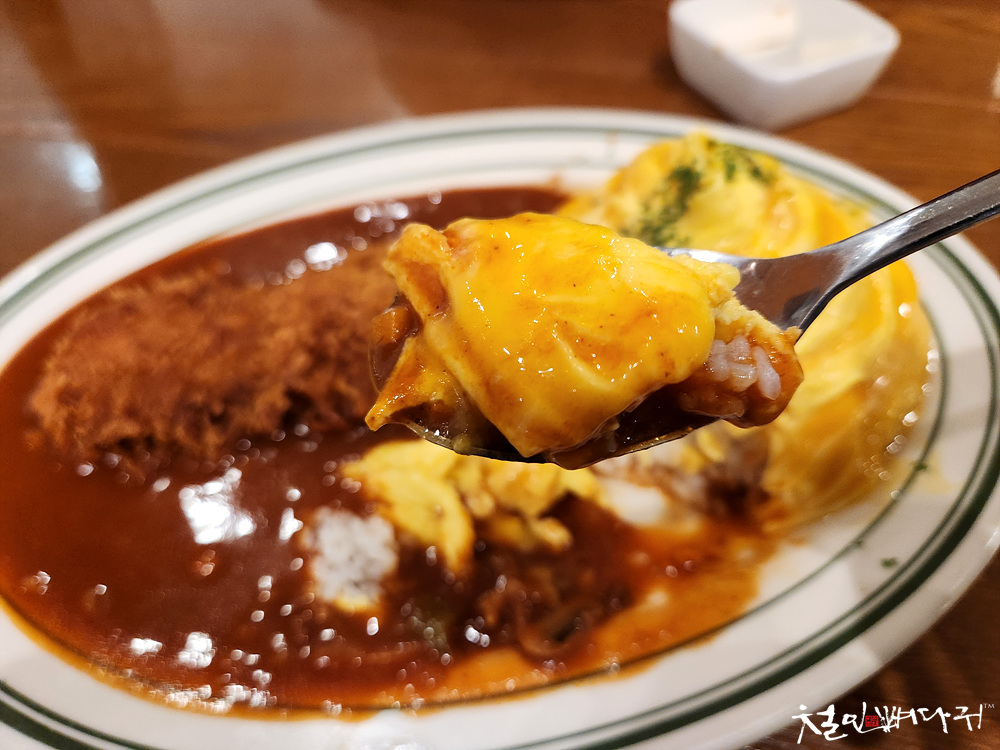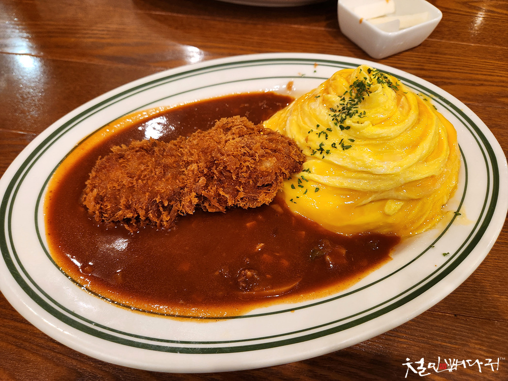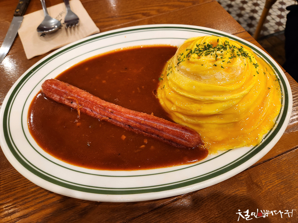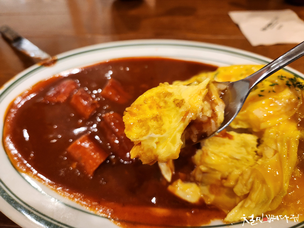 오므라이스 두툼해서 아낌없이 만든 느낌입니다.