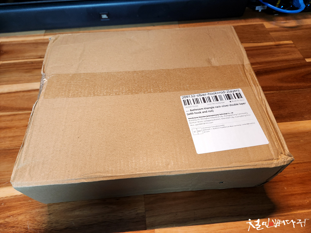 커다란 종이상자가 다른 물품들과 같이 배송되어 왔습니다.