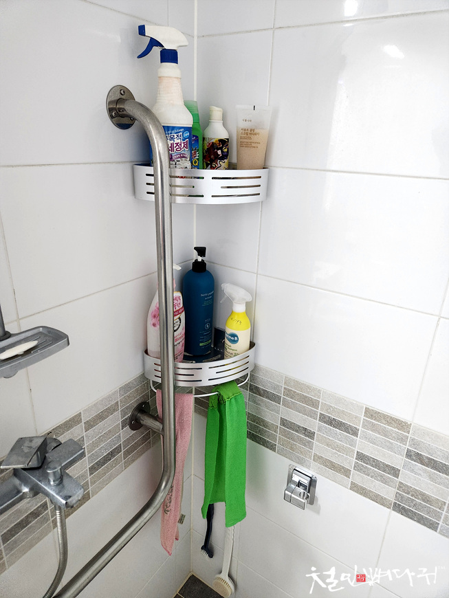 하부에는 때타올 같은 것들을 걸어둘 수 있는