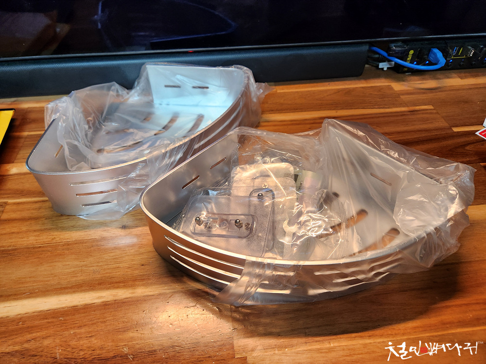 금속 소재의 코너선반 2개와 부속품들입니다.