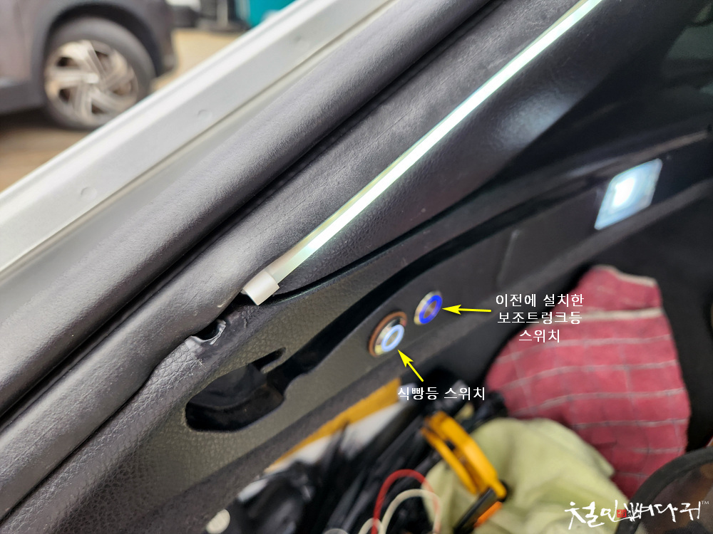 기존에 설치해 놓은 트렁크보조등에 연결된