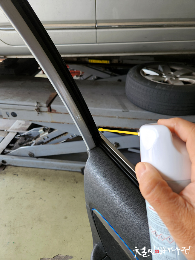 현대i40왜건 유리창에 실리콘스프레이 살포