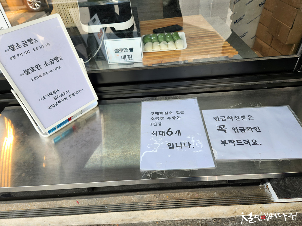 1인당 6개 제한이라서 팥소금빵 1개와 기본쌀소금빵 5개 구매.