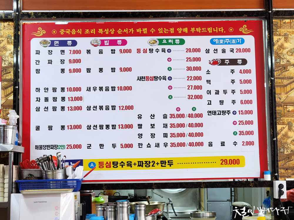 간짜장, 짬뽕, 볶음밥(곱빼기)