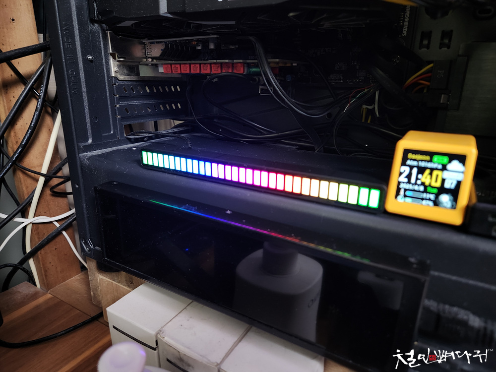 오픈된 컴퓨터 케이스에 붙여두었습니다.