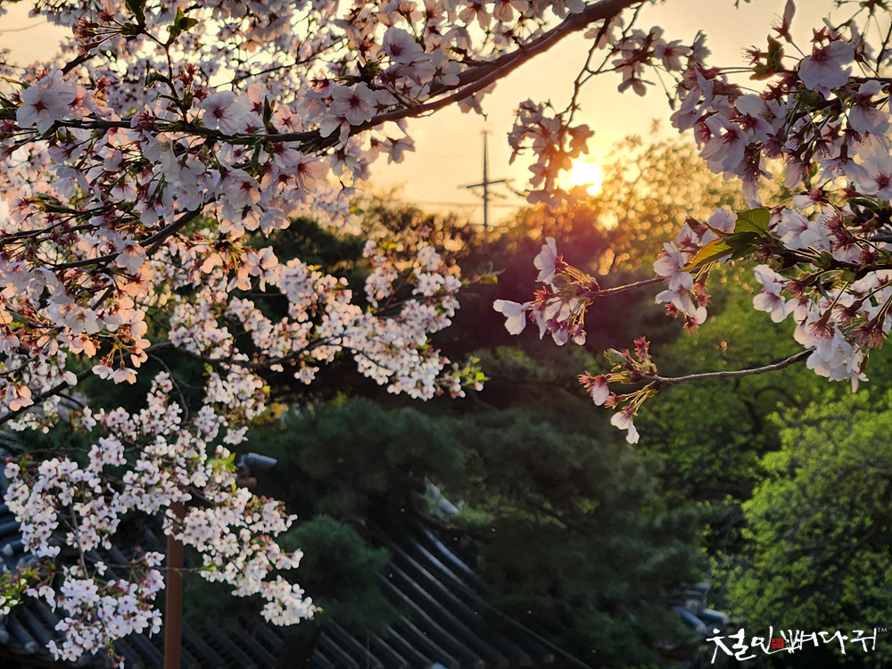 벚꽃과 도시너머로 지고 있는 노을을 담습니다.