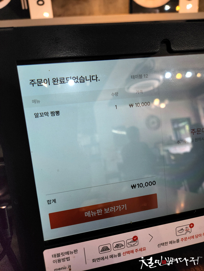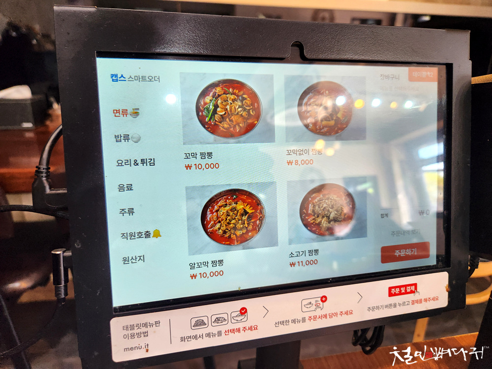 알꼬막짬뽕을 테이블의 태블릿으로 주문했습니다.
