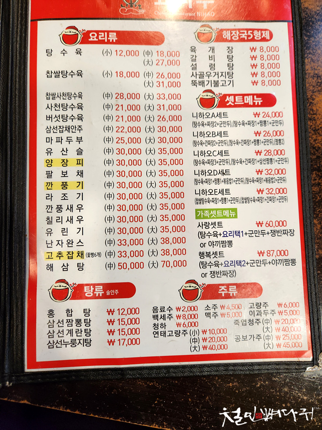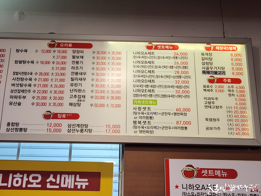 세트메뉴들은 2인 이상 기준으로 되어 있어