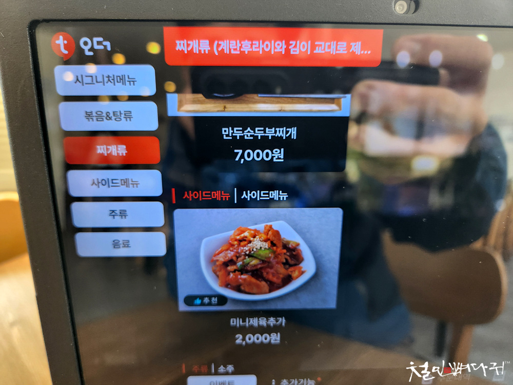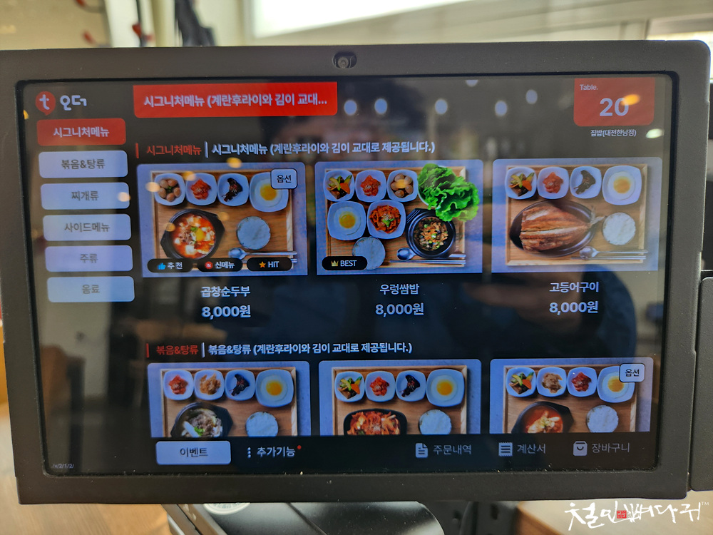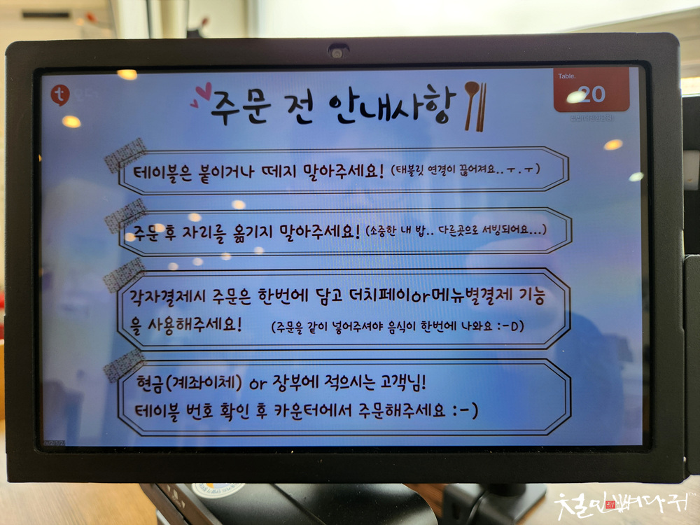 식당 처음 방문해서 태블릿에 있는 내용을