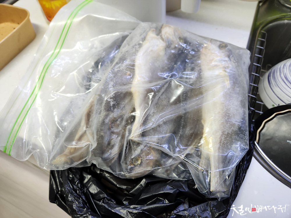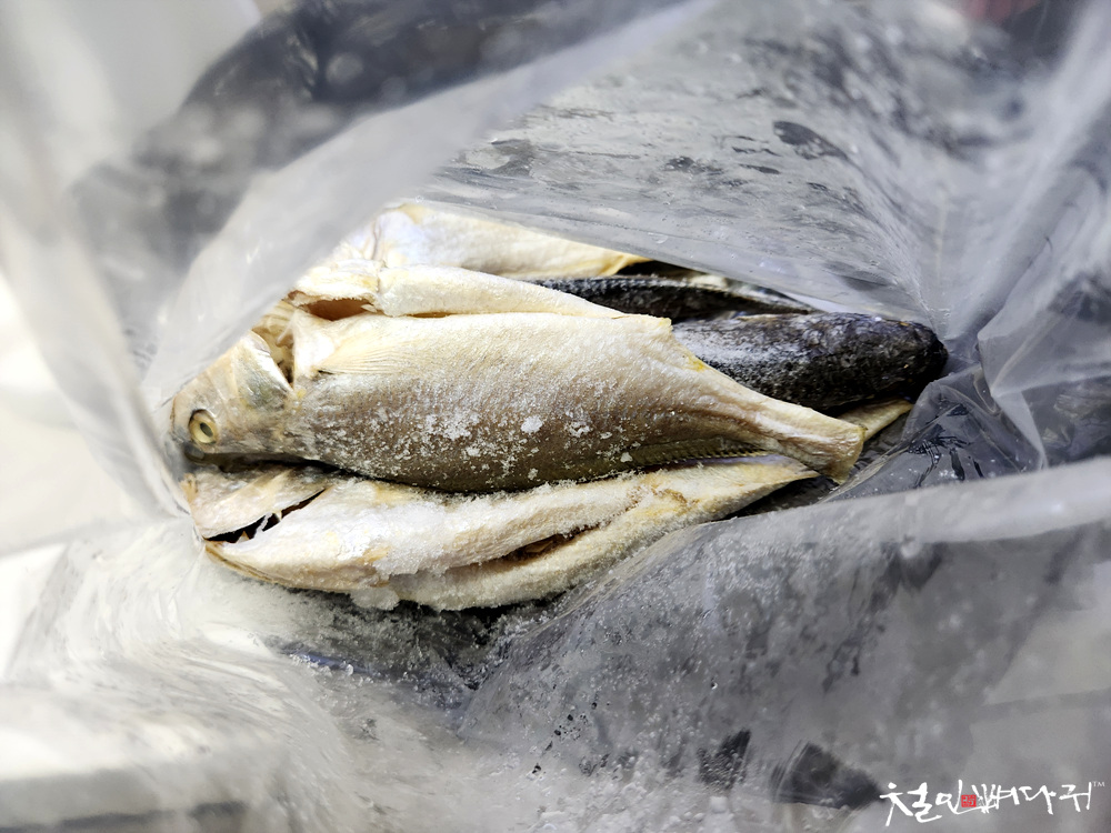 이번에는 보리굴비 8마리를 냉동된 상태로 전해주었습니다.