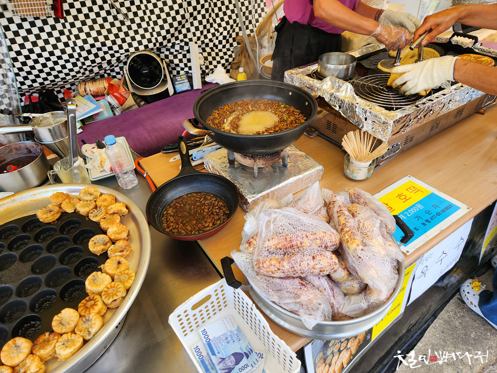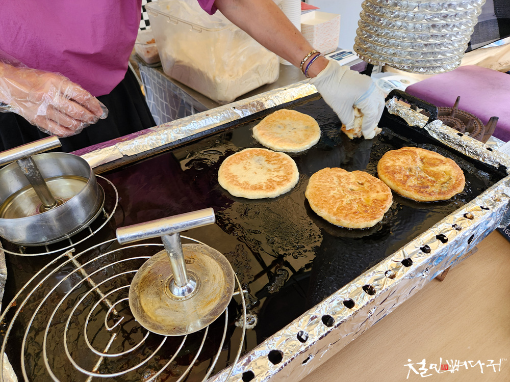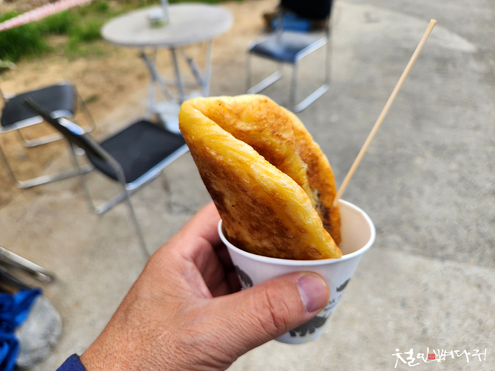 보리밥 먹고 나와서 호떡 하나 사 먹었습니다.