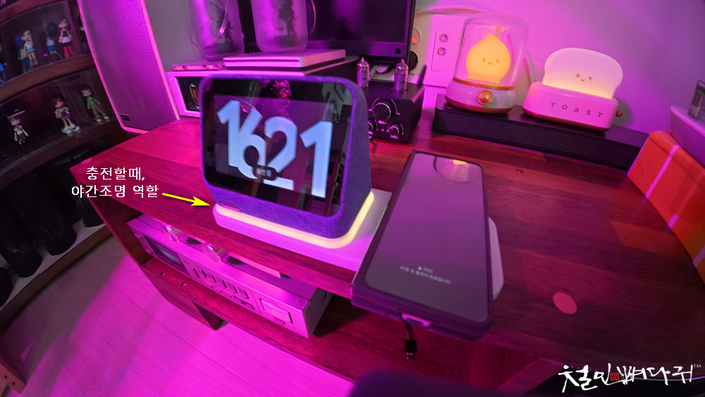 무선충전도 잘되고, 바닥판에는 충전할 때,