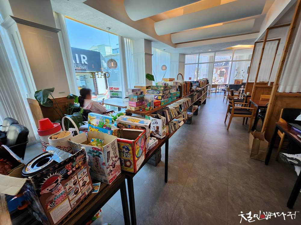 3층에 올라갔더니, 중앙에 각종 보드게임용품들이 있습니다.
