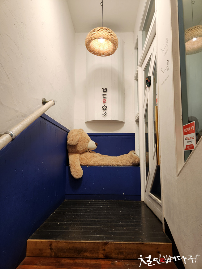 2층 올라가면서 식당 입구에서 마주한 곰인형