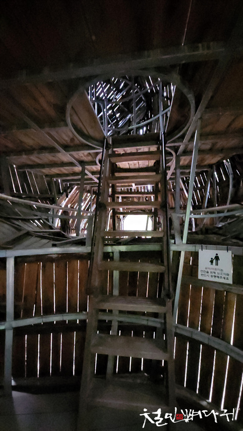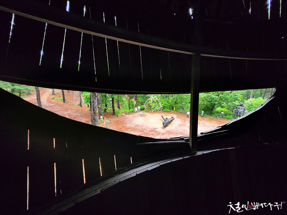 제일 높은 곳에서 눈을 통해 밖을 내다봅니다.