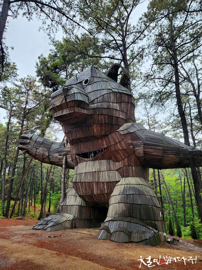 거대한 곰 모형 작품으로 내부로 들어갈 수 있는