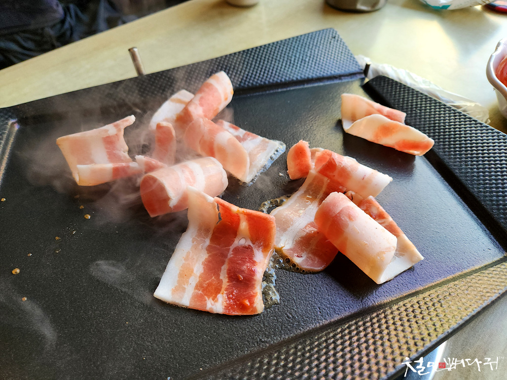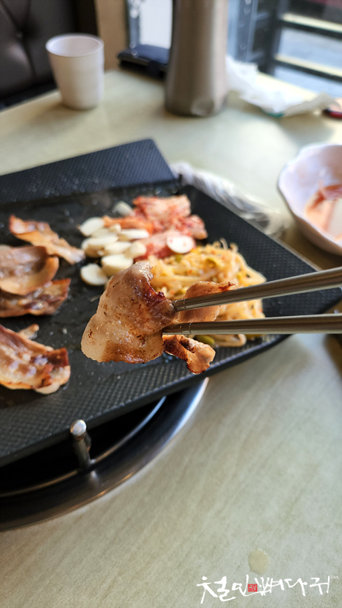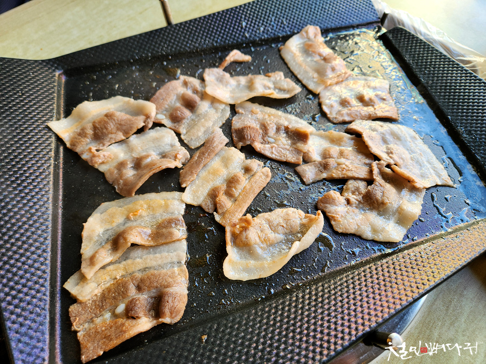 순간의 시간을 이용해서 먹는 대패삼겹살 맛있습니다.
