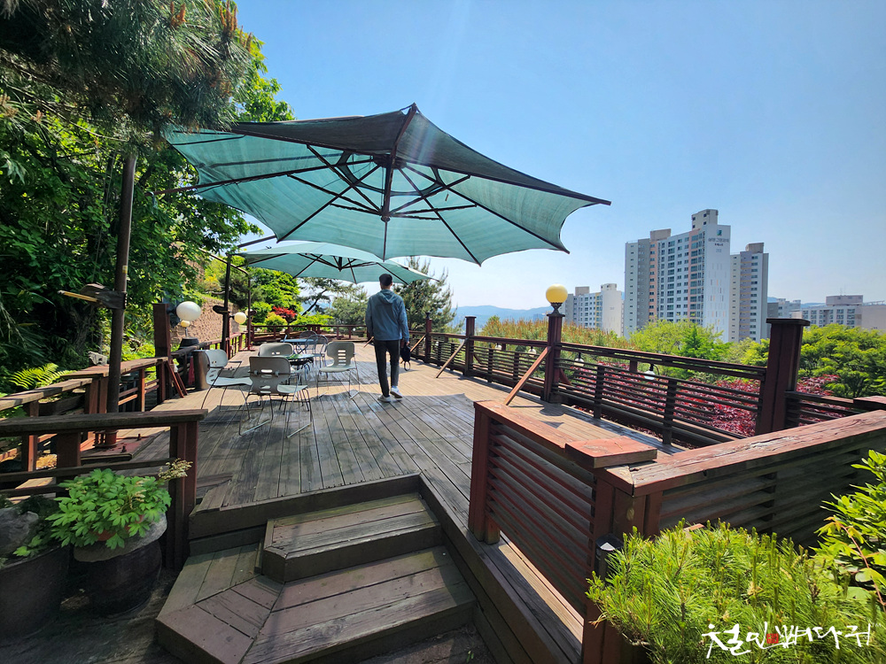 식사 마치고, 식당 앞, 휴게공간에 나와서 보니