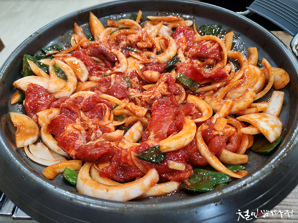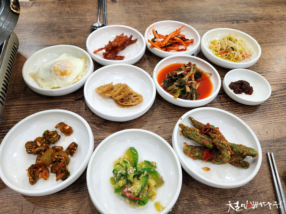 메뉴판의 주물럭 주문했고, 반찬은 여전히 잘 나옵니다.
