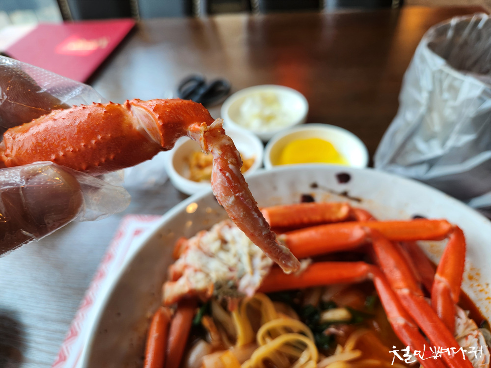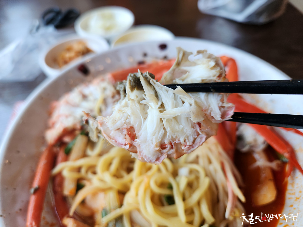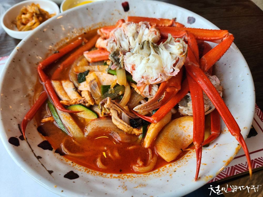 홍게 한마리가 올려진 짬뽕이 나왔습니다.