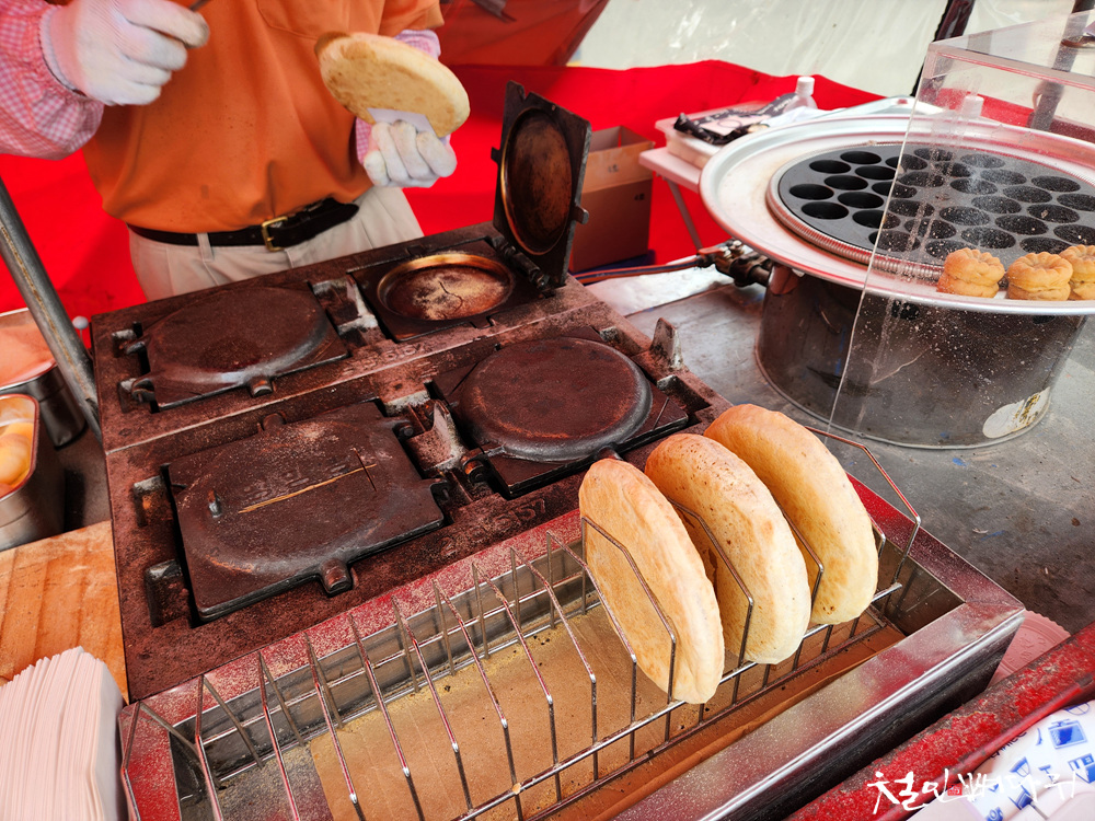귀가 안들리는 어르신이 호떡을 만들고 있습니다.