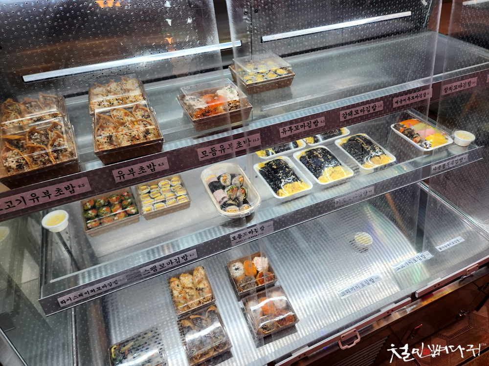 도시락처럼 구입해갈 수 있는 샌드위치나 김밥들이