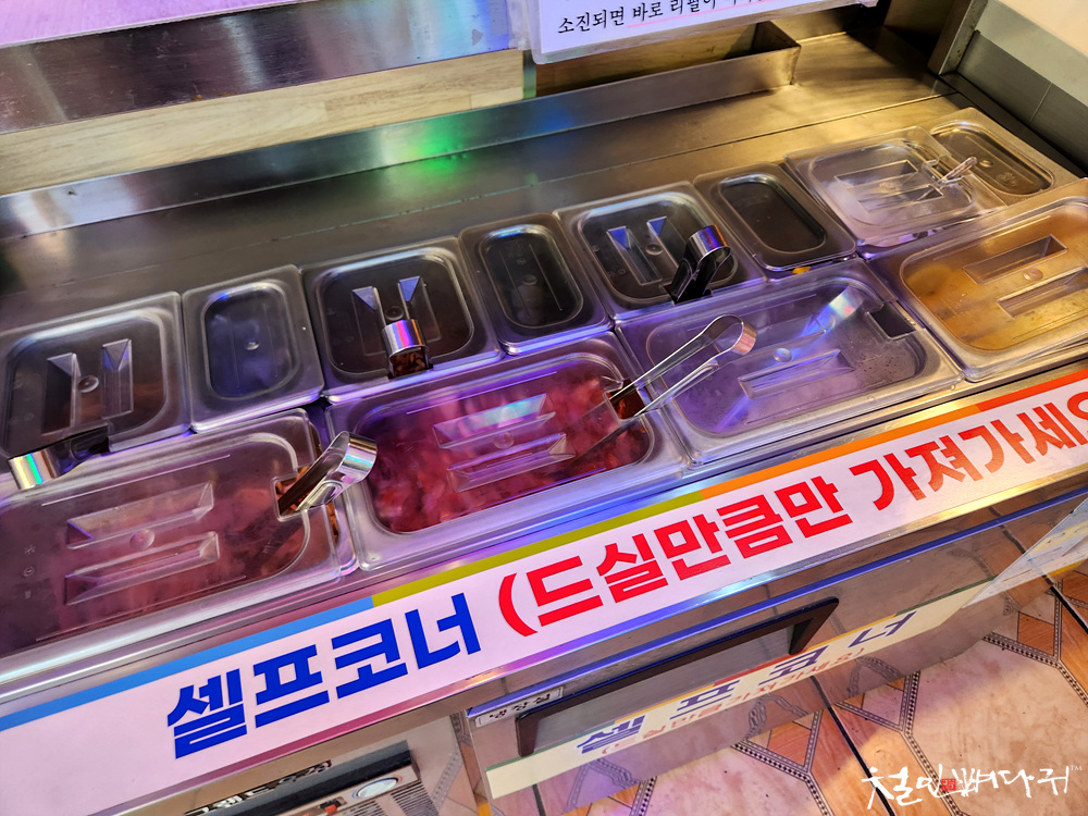 10여 종의 반찬들을 가져다 먹을 수 있고,