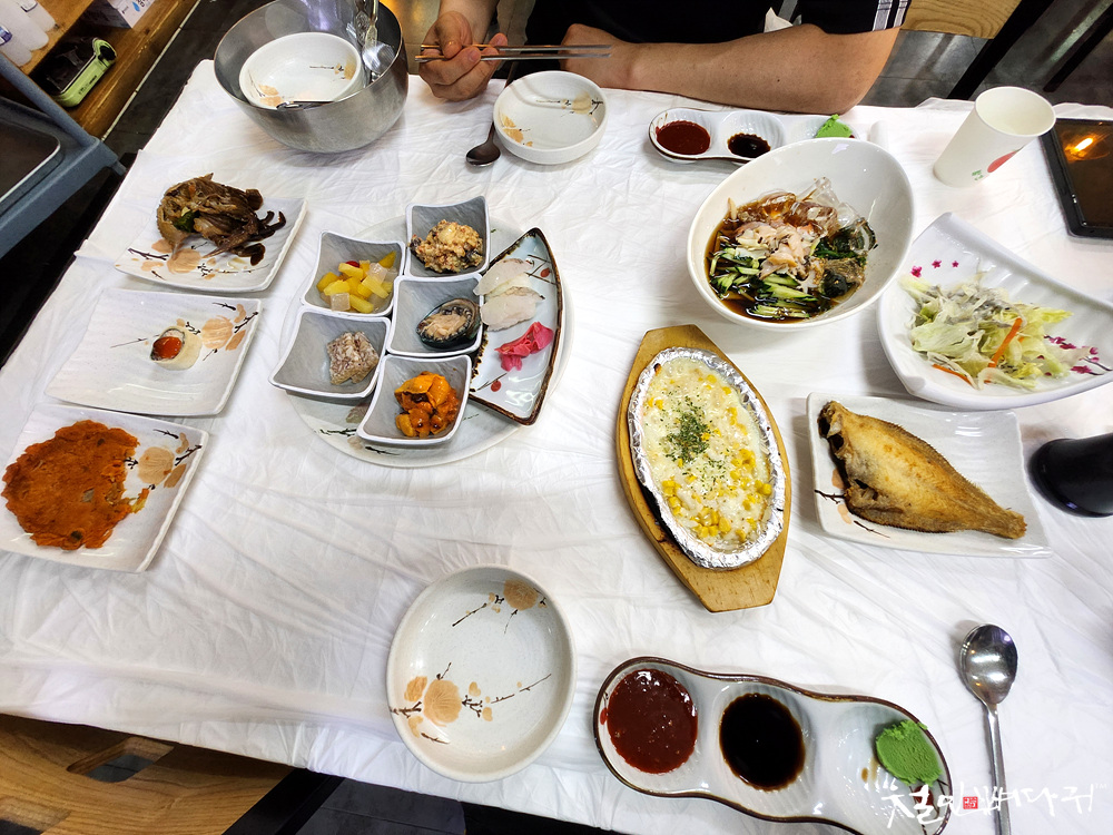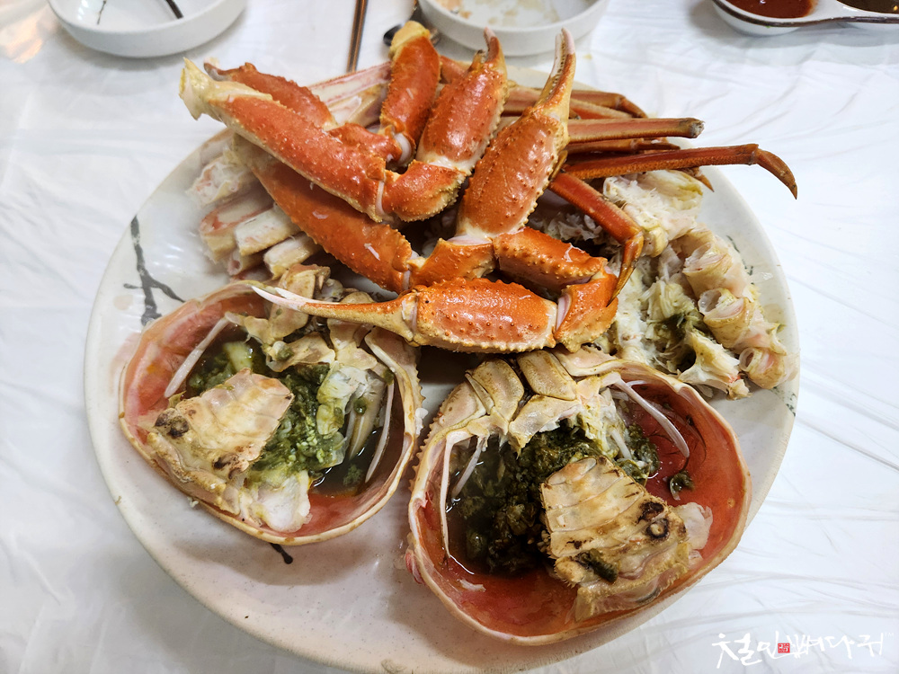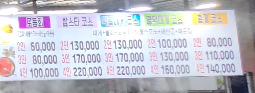 2인 경우, 박달대게1마리+물회+모듬회+해산물+매운탕 등등의 구성입니다.
