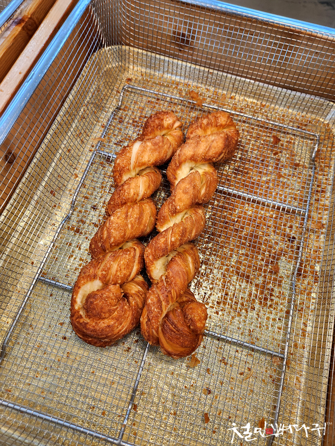 가위로 조각낸 꽈배기 맛있네요.