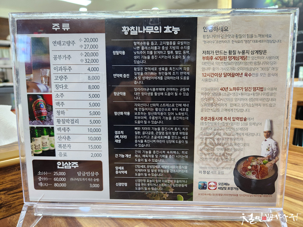 누룽지삼계탕 같은 보양식 음식을 취급하는데,