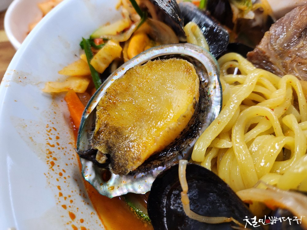 큼직한 쭈꾸미, 전복이 들어 있습니다.