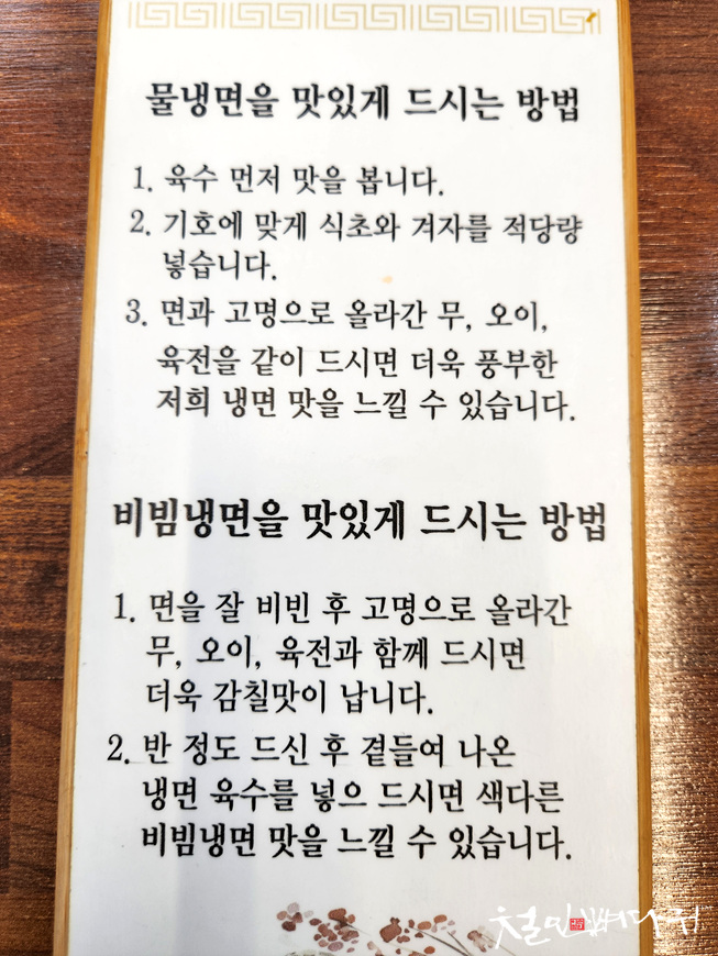 비빔냉면에 같이 나오는 육수를 나중에 부어주면