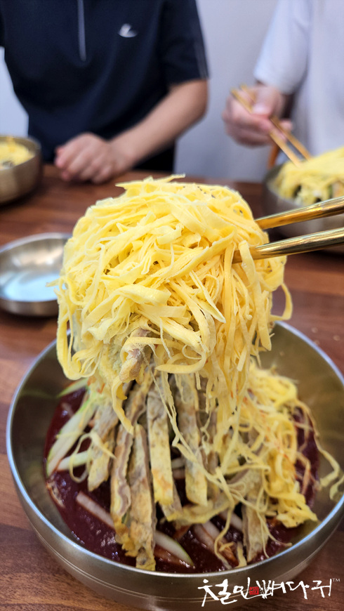 육전과 같이 먹으면 감치맛도 있고, 면 외에 씹히는 식감이