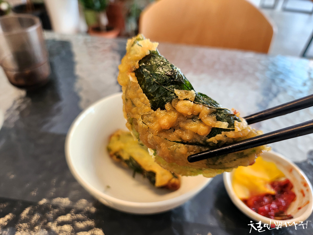 떨어졌고, 바삭함과 깻잎 안 속재료의