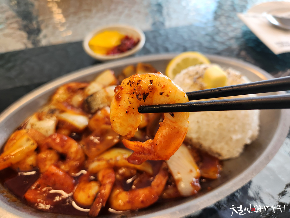대표 메뉴 같은 쉬림프라이스 주문했습니다.