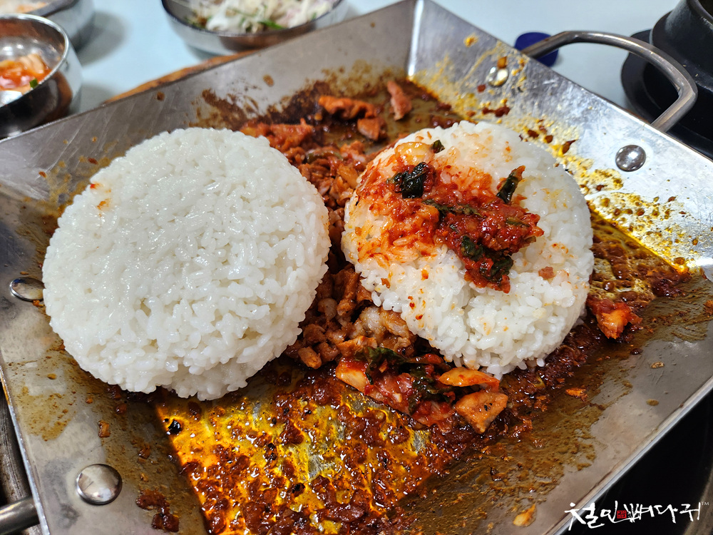 바로 공깃밥 2개 주문해서 볶아줍니다.