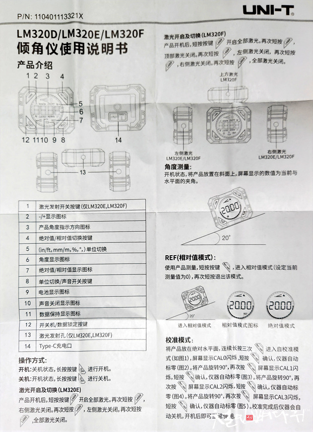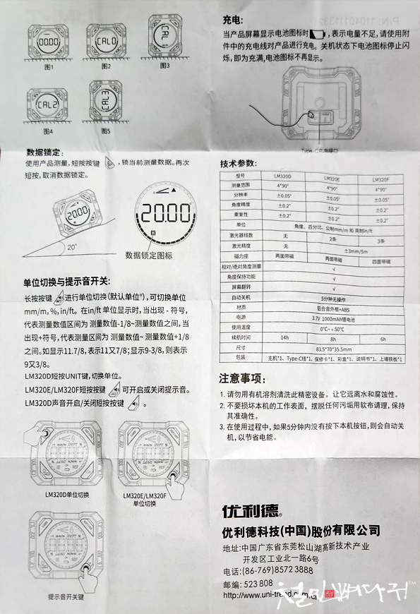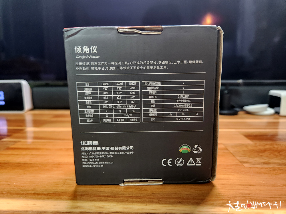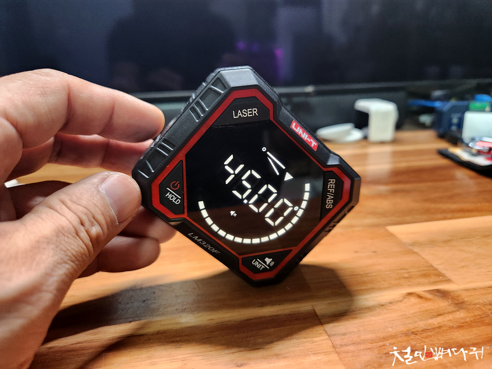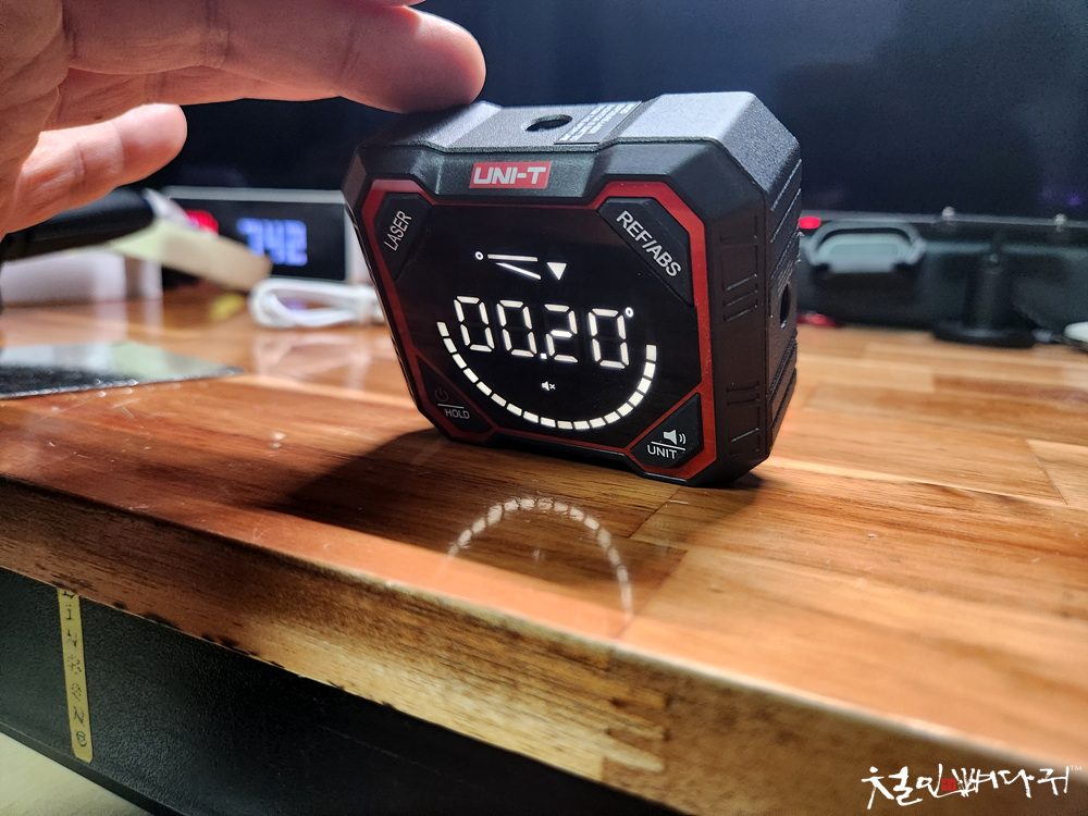 디지털각도기 양쪽 측면과 하단부, 뒷면에