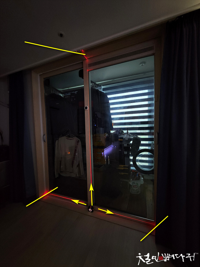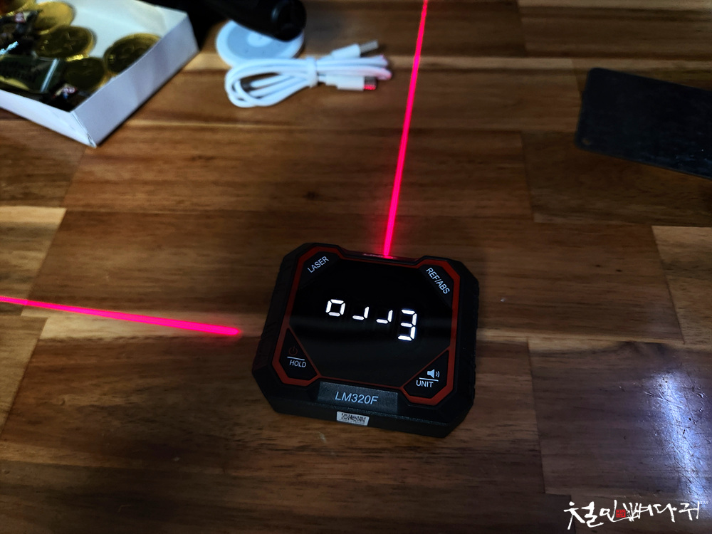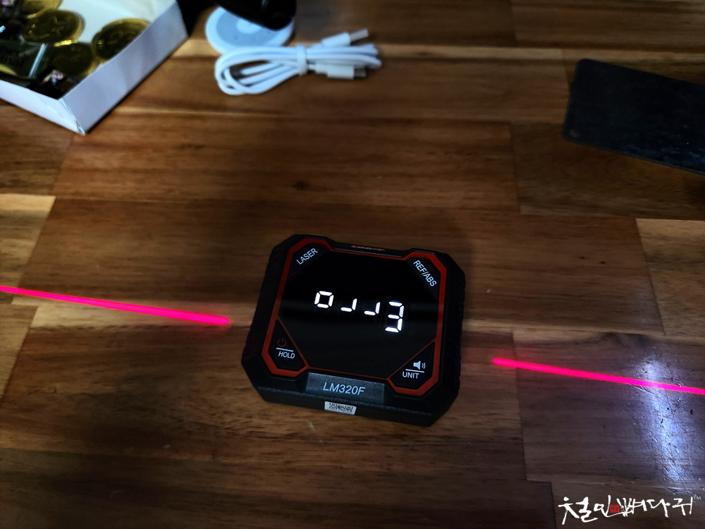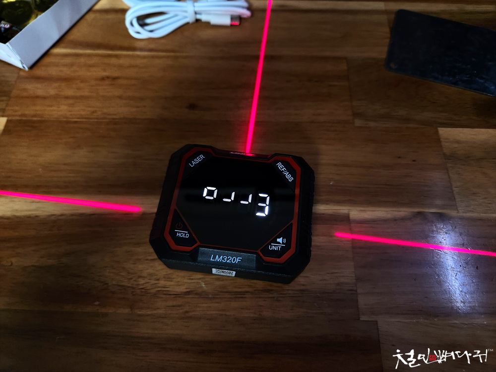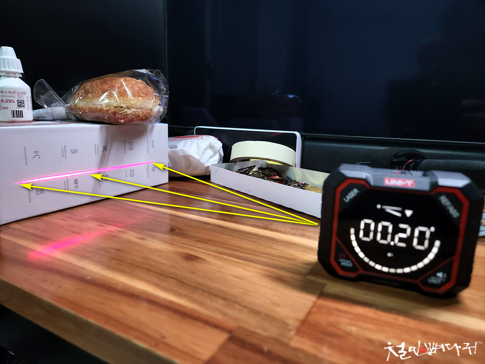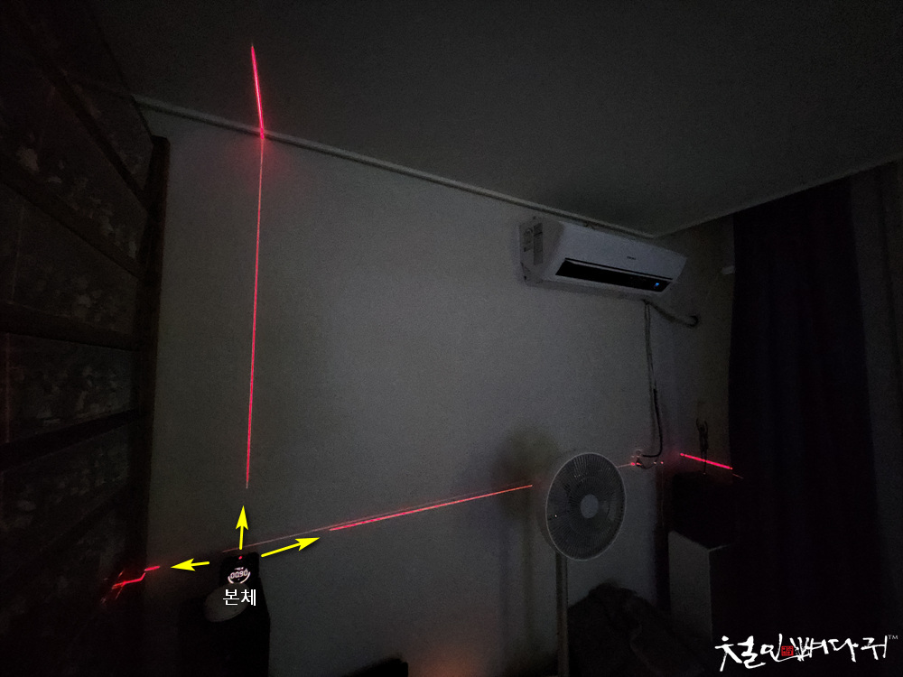 수평으로 레이저를 발사해서 표시해 줍니다.
