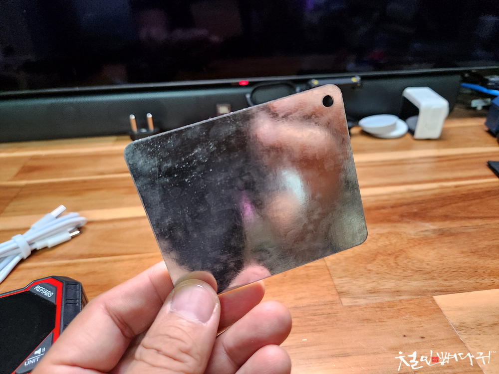 뒷면 가운데 금속 부분은 무엇인지 모르고,