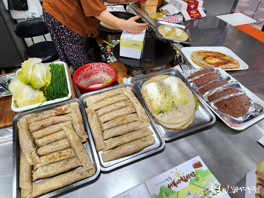 영월서부시장 안에는 배추 전, 메밀전병을 만드는
