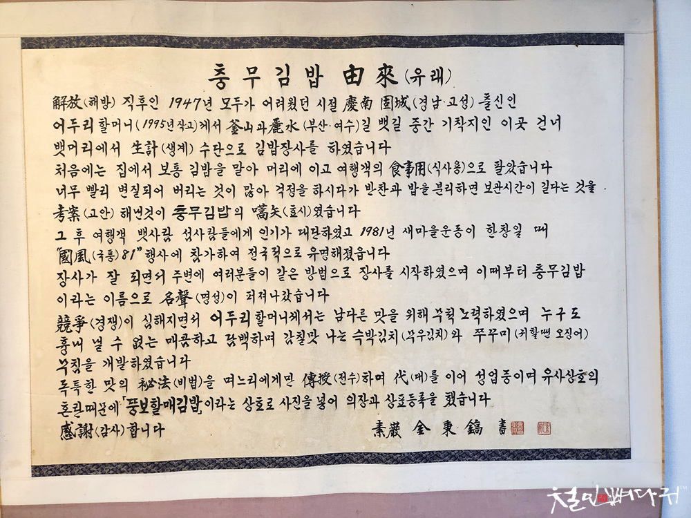 충무김밥의 유래