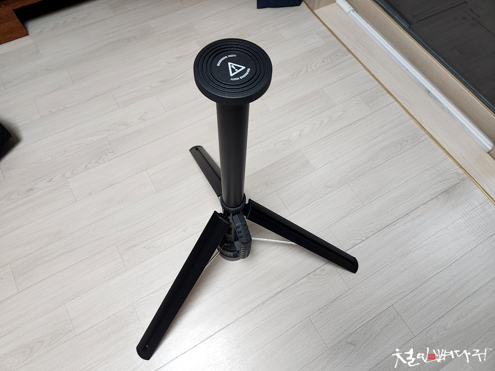 삼각대가 본체에 접힌 상태로 있습니다.
